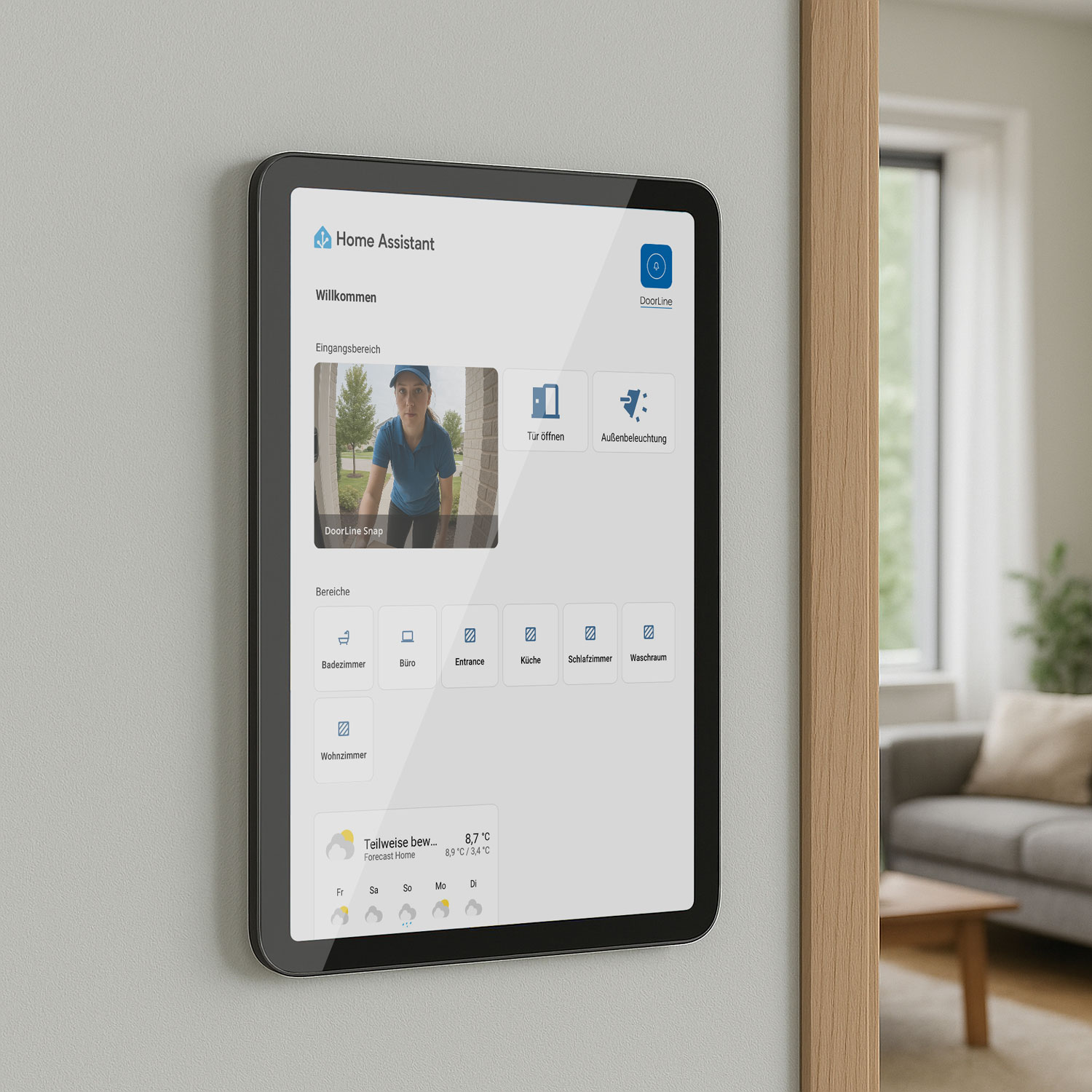 DoorLine Snap lässt sich tief in Home Assistant integrieren. Nutzen Sie Sensorwerte und Eingänge für Automationen, Szenen oder Sicherheitsfunktionen – ganz ohne Zusatzmodule.