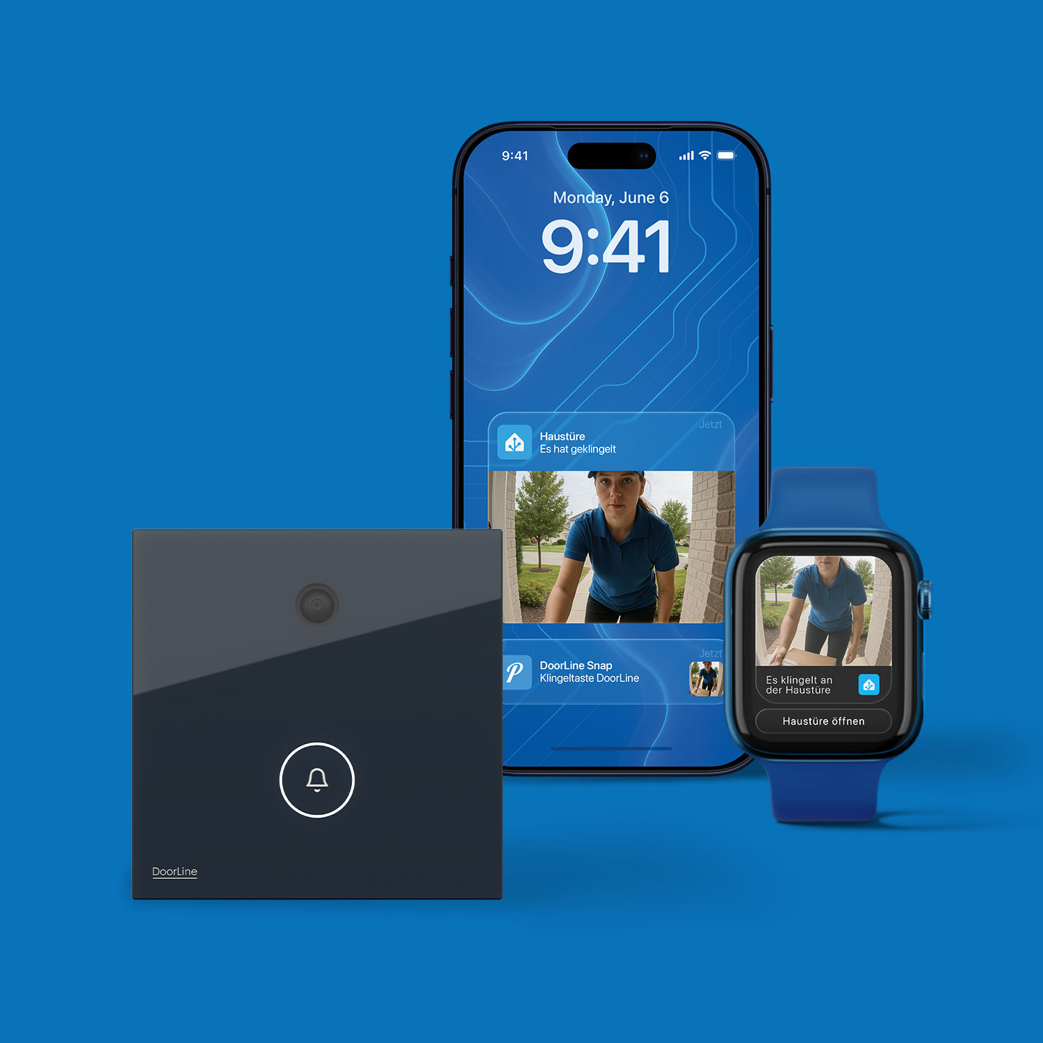 Die DoorLine Snap informiert Sie zuverlässig, sobald jemand klingelt – zuhause oder unterwegs. Wählen Sie Ihre bevorzugte Art der Benachrichtigung: Über die Push-Mitteilung können Sie die Tür sofort entriegeln.